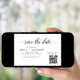 QR Code - Modern and Elegant Landscape Horizontal Three (3) Photo Save the Date Wedding Magnet with hand lettered script typography. The save the date invitation magnet includes script typography and chic and simple design that you can add your customized engagement photograph picture to.