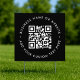 A simple custom black QR code yard sign template in a modern minimalist style which can be easily updated with your QR code, business name or website and custom text, eg. scan me to...