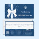 The design includes a decorative ribbon on a confetti background, with the company’s custom logo and name displayed prominently on the right. Beneath this, the voucher value is clearly presented.