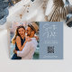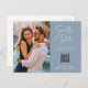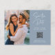 These simple and elegant dusty blue wedding save the date postcards feature modern handwritten script typography along with your favorite personal photo and a QR code that leads to your wedding website.