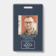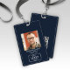 Stylish ID badge design featuring a prominent photo and personalized logo. QR code on back for quick smart contact sharing. Perfect for company identification and security. Also, great for professional event badging.