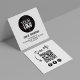 This design features a simple square social media business card with a QR code, bold, and trendy, your logo here, and share your website or social media, with this modern, minimal, simple, minimalist, template for any small business or large corporation. Great for packaging inserts. With scan me lettering and arrow