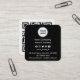 Generic square business card with custom logo and text fields. Custom background color. Custom QR code at the back.