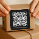 A simple custom black QR code sticker template in a modern minimalist style which can be easily updated with your QR code and custom text, eg. scan me to... #QRcode #sticker #business