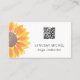 This stylish business card is decorated with a yellow watercolor sunflower and modern typography.