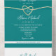 QR Code Teal Gold Heart Wedding All In One Invitation