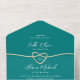 Celebrate your big day with this elegant teal and gold all-in-one wedding invitation. The modern design features a gold rope heart on a deep teal background with stylish white text. This convenient seal and send invitation includes an RSVP card with QR code for easy online replies and space for your wedding website. No separate envelope is needed, making it both practical and eco-friendly. Perfect for couples planning a modern, chic, and stress-free wedding day.