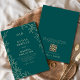 Celebrate your big day with this QR code teal green and gold minimal leaf wedding invitation. Featuring a bold teal green background, elegant gold leaf accents, and modern minimalist typography, this design blends jewel tone luxury with practical convenience. The integrated QR code makes it simple for guests to RSVP and access your wedding website instantly. Perfect for fall weddings, winter celebrations, or couples who love rich jewel tone stationery.