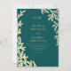 QR Code Teal Green & Gold Minimal Leaf Wedding Invitation