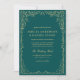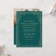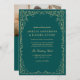 Invite your guests with this QR code teal green photo minimalist wedding invitation. Featuring a bold teal green background, elegant gold flourishes, and space for a customizable photo, this modern design blends jewel tone sophistication with practical convenience. The scannable QR code makes it easy for guests to RSVP and access your wedding website for all the details. Perfect for fall and winter weddings, black tie celebrations, or couples who love rich jewel tone stationery.