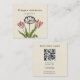 QR Code Vintage Flower Square Business Card