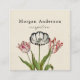 QR Code Square Business Card - Beautiful antique flowers (tulips) botanical illustration on a vintage paper background. The template text fields are pre-designed to allow you to personalize easily. Add your tag line or motto with qr-code and contact information. Classic and elegant floral. Modern square business card.