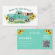 A super cute, pet business card for pet sitters, pet care, pet adoption, pet hotels, dog walkers, dog groomers, dog trainers, doggy daycare and veterinarians. Soft, unique watercolour pet elements with vintage truck and sunflower florals. Add the URL of your business website on the reverse of the card which will update the QR code, (or delete if not required). Customize your name and business details by editing the text template. Social media icons can be deleted if not required - click on customize/personalize further in order to do this.