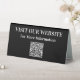Budget website information promotional scannable QR code promotional desk signs you can use to promote your clients to seek additional information in an office visit waiting room, at corporate events, or trade shows with QR code template you can replace with your own for customers to read and scan at company meetings, educational seminars, or advertising and marketing and Includes printing on both sides in simple budget friendly tent style signs.