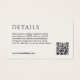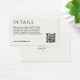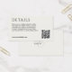 This romantic and elegant deatils enclosure / insert card features a contemporary set of fonts in cyan black against a white background. Included are a QR code and couple monogram at the back.