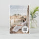 Double sided QR code wedding save the date card personalized with two photos, one on either side. Save our date in a pretty white script. Your QR code giving your future guests access to your wedding website printed atop your photo with a little heart. Simple, modern, and beautiful QR code save our date card personalized with photos. Photo template save the date card with your QR code.