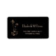 This elegant label features a copper / rose gold line art hand drawn wildflower with texts in sans serif fonts on a black background. Modern minimalistic floral boho design.