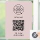 A simple custom blush pink business vinyl window cling decal sign template in a modern minimalist style which can be easily updated with your company logo, QR code and custom text.
