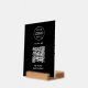 A simple custom black tabletop wood block stand sign template in a modern minimalist style which can be easily updated with your company logo, QR code and custom text. This template is designed for cafes, restaurants, bars and hospitality event catering businesses that want a modern and professional display without visual clutter. Easy to adapt for retail counters, cash wrap areas, studios, salons, food service setups, events or trade shows. The layout keeps everything centered and easy to read so customers can find your details at a glance. The editable fields allow you to update your business info quickly and adjust the text to suit your purpose. A simple and polished choice for everyday business use.