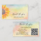 This yoga instructor's floral business card features a yellow watercolor sunflower on a vibrant background.