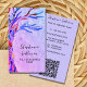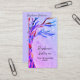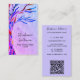 This modern business card is decorated with a rainbow-colored mosaic tree design on a purple background.