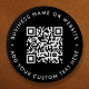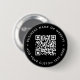 A simple custom black QR code round button pin template in a modern minimalist style which can be easily updated with your QR code, business name or website and custom text, eg. scan me to... #QRcode #button #business