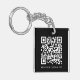 A simple custom black QR code keychain template in a modern minimalist style which can be easily updated with your QR code and custom text, eg. scan me to... #QRcode #keychain #business