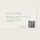 These wedding gift registry enclosure / insert card feature a contemporary set of fonts in sage green against an ivory background. Included are a QR code and couple monogram at the back.