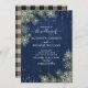 QRCode Blue Silver WinterWood Plaid Rustic Wedding Invitation