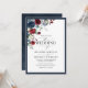 QRCode Navy Blue Burgundy Floral Watercolor Script Invitation