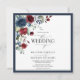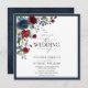 QRCode Navy Blue Burgundy Floral Watercolor Script Invitation