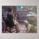 A moment of quiet interaction between a child and a pet, reproduced from original acrylic painting by Ken Calvert