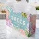 Social distancing got you down? Gift a friend, relative, or loved one with some stay-at-home essentials in this cute and humorous gift bag. Design features pastel watercolor succulent plants surrounding the words "quarantine succs without you" on a light aqua background.