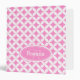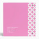 Modern bright pink and white circular patterned folder. Customize this binder with your name and your family initial on the front and address and contact details in case of loss on reverse. Currently reads Rosana R. Ideal personalized gift for girls and women studying at school, college or university whom want a distinctive named folder. Designed by Sarah Trett.