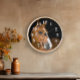 Numbered wall clock with the photo of a beautiful brown and white quarter-horse on an elegant black background.
