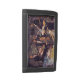 I was inspired to create an original collage which has been reproduced on this wallet after listening to the wonderful music of a fantastic jazz quartet. I hope my impressionistic interpretation captures some of the feeling and movement. Four musicians swirl in a kaleidoscope of gold, brown, black, white, green, yellow and blue.