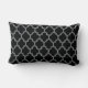 Black, white and gray quatrefoil pattern lumbar pillow.