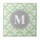 Quatrefoil Fleur-De-Lis Mint Green Grey Monogram Ceramic Tile