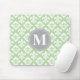 Quatrefoil Fleur-De-Lis Mint Green Grey Monogram Mouse Pad