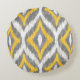 Quatrefoil Ikat Pattern In Gray And Yellow Round Pillow