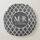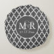Quatrefoil Monogrammed Wedding Grey and White V2 Round Pillow