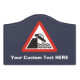 Quayside or river bank warning sign. Traffic sign warns drivers of driving over wall to plunge into water. Custom text.