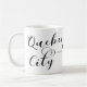 Mug with stylish scripted font design, with the flag of Quebec City in a heart.