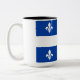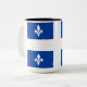This design features the flag of the Canadian province of Quebec (known as Québec in French). It is the second-most populous province of Canada, after Ontario. It is the only one to have a largely French-speaking population, with French as the sole provincial official language. Most inhabitants live in urban areas near the Saint Lawrence River between Montreal and Quebec City, which is the capital.