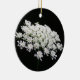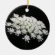 This ornamet features the delicate white flower of the Wild Carrot, (Daucus carota), commonly called Queen Anne's lace on a black background. Queen Anne's Lace symbolizes a haven or sanctuary. Let nature decorate your tree or holiday gifts! Ornaments also make great fan or lamp pulls. Can add a unique touch to curtain tie backs, or even use as wall decorations.
