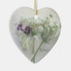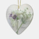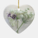 A heart ornament with white Queen Anne's lace, white bougainvillea and tiny heliotrope flowers on old handwriting is wonderful for a bridesmaid or flower girl gift, or a wedding guest favor.
