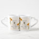 A humorous and charming Queen Bee and Her Honey bee couples mug makes a perfect newlywed gift for a wedding, bridal shower or couples shower.. It can be monogramed with the initials of the bride and groom and personalized with their names and wedding date on the back. The back says Meant To Be. Designed by Chrissy H. Studios, LLC. All rights reserved.