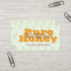 Pure Honey beekeeper business card over a pattern of queen bees and light green background color. Customize the beekeeper or apiary business name, and contact information on the back. Specify the type of honey product: Wildflower, Red Clover, Buckwheat, Local, All Natural or Honeycomb. Use the matching labels in the collection for honey jar product packaging. © dotpattern