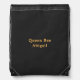 Queen Bee drawstring backpack - black base with yellow font. Add your (your queens) name.