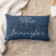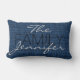 Queen Blue Burlap Rustic Linen Monogram Lumbar Pillow